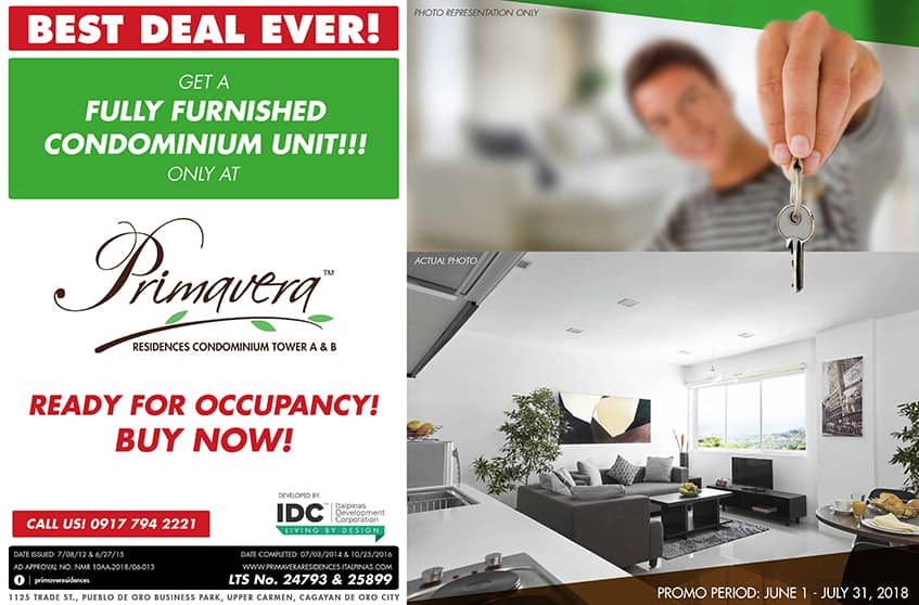 Italpinas Development Corporation (IDC) presents its new special offer for  Primavera Residences. Get your Unit Fully Furnished, and Ready for Occupancy. This offer runs until August 31 only. So, hurry!  Book a unit now!